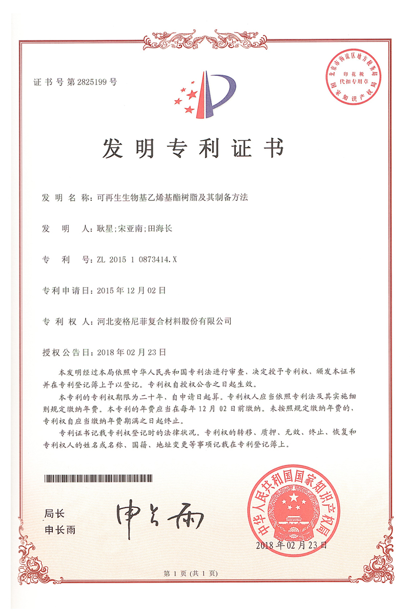 部分專利證書